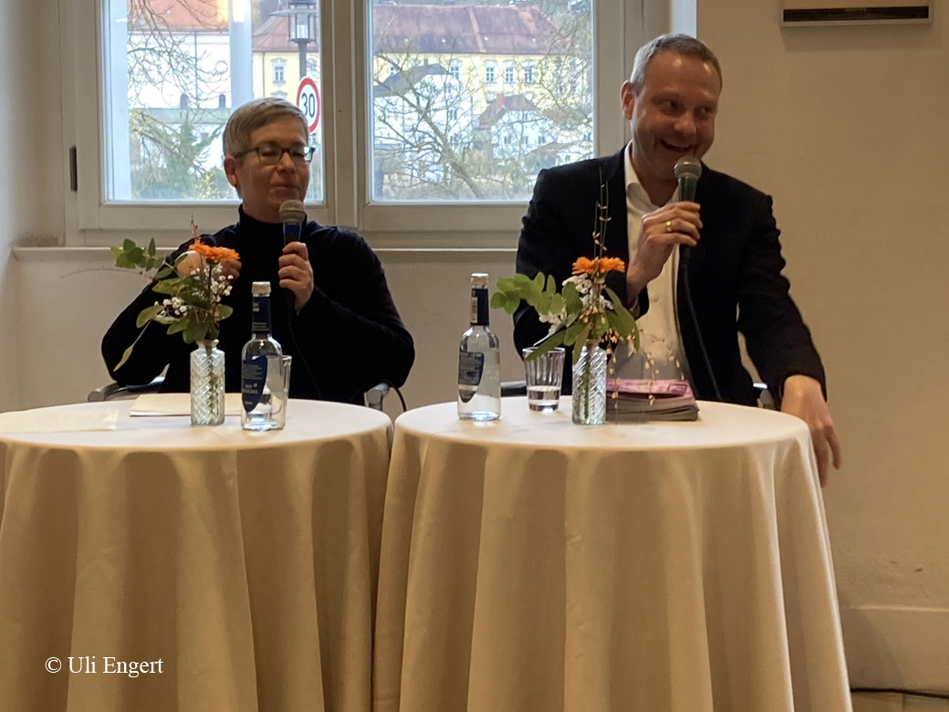 Schauspieldramaturgin Dana Dessau und Regisseur Peter Oberdorf waren extra aus Landshut gekommen, um das Stück von Pedro Calderon de la Barca vorzustellen. Über Leben und Wirken des spanischen Autors (17.Jhd.) mit seinen politischen Rahmenbedingungen wurde berichtet. Kern des Inhaltes ist die Unterscheidung zwischen Traum und Wirklichkeit – ein Thema, das in Zeiten von Fake News und KI aktueller denn je ist. Entsprechend hat Peter Oberdorf (auch Ausstattung) mit zeitgemäßen Mitteln das Stück in Szene gesetzt.