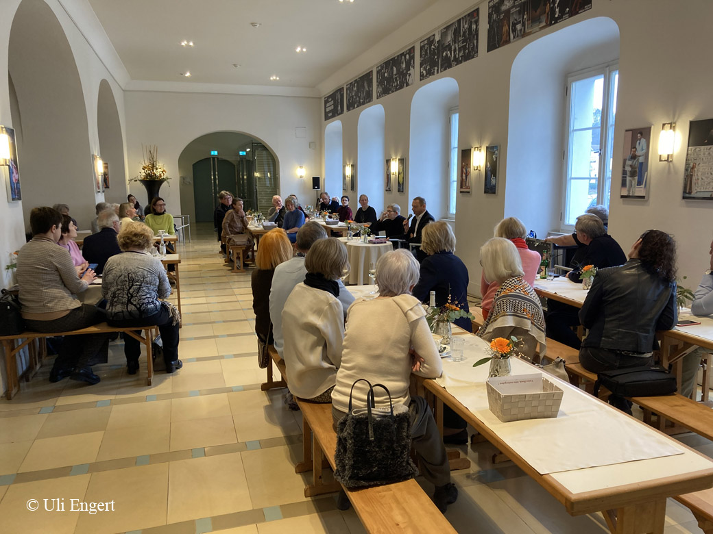 Schauspieldramaturgin Dana Dessau und Regisseur Peter Oberdorf waren extra aus Landshut gekommen, um das Stück von Pedro Calderon de la Barca vorzustellen. Über Leben und Wirken des spanischen Autors (17.Jhd.) mit seinen politischen Rahmenbedingungen wurde berichtet. Kern des Inhaltes ist die Unterscheidung zwischen Traum und Wirklichkeit – ein Thema, das in Zeiten von Fake News und KI aktueller denn je ist. Entsprechend hat Peter Oberdorf (auch Ausstattung) mit zeitgemäßen Mitteln das Stück in Szene gesetzt.