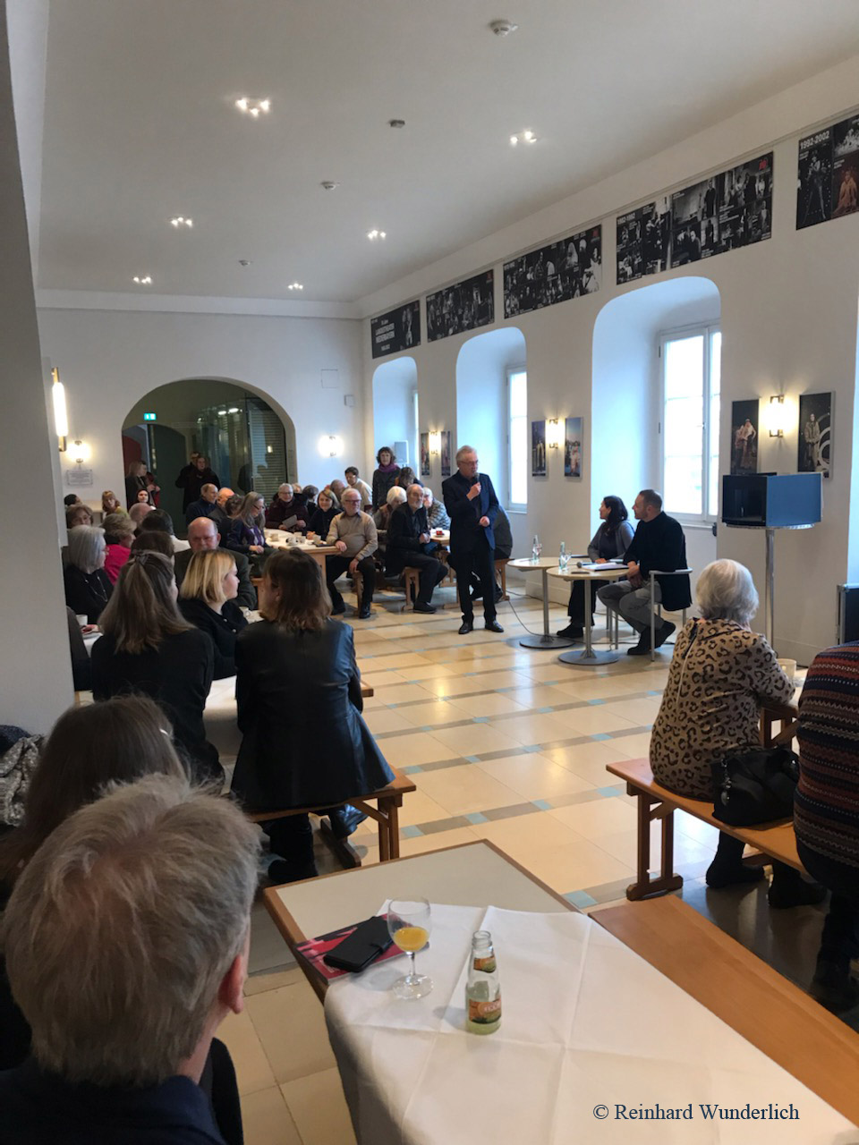 Bis auf den letzten Platz gefüllt war das Theaterfoyer, als 1.Vorsitzender Gerd Schmidt Mitglieder und Gäste zum ersten Theaterfrühschoppen der Spielzeit 2022/23 begrüßte. Ab 10.15 Uhr war zum Frühstück geladen worden, die Einführungsmatinee zu „Rinaldo" begann um 11.00 Uhr. Die Moderation übernahm Kobie van Rendsburg. Der international tätige Barock-Spezialist war wieder nach Passau gekommen und zeichnet für Regie, Ausstattung und Video-Installation verantwortlich.